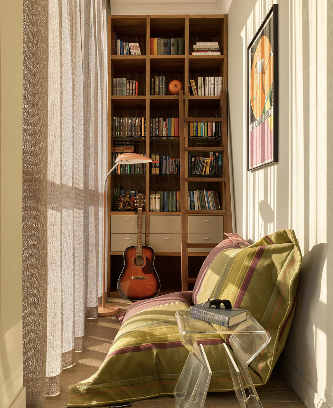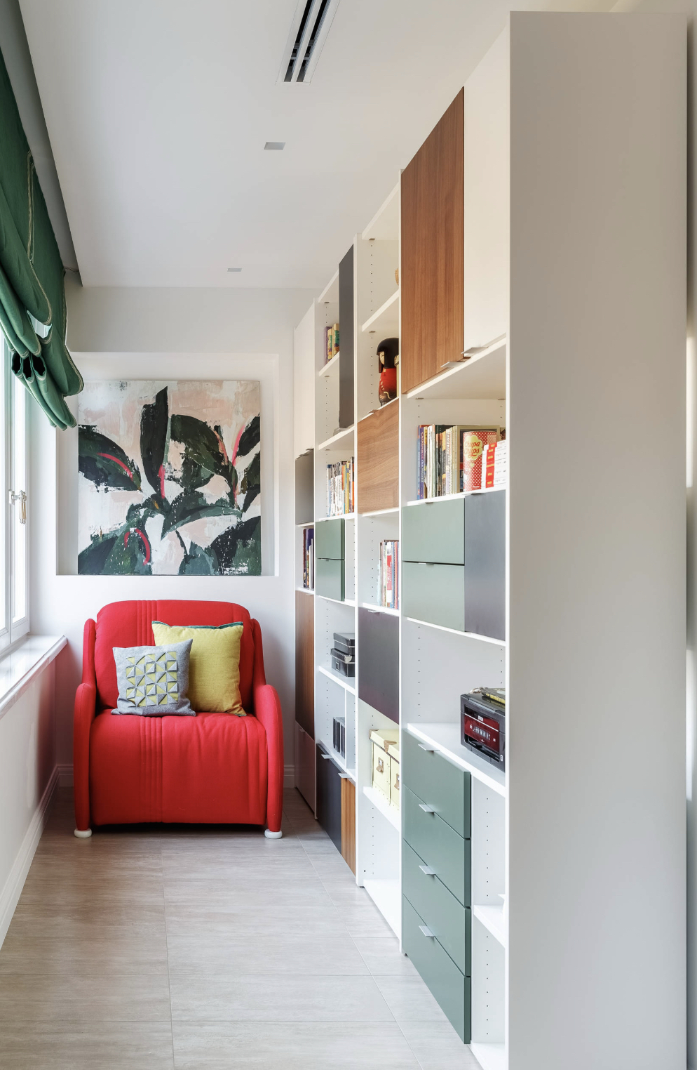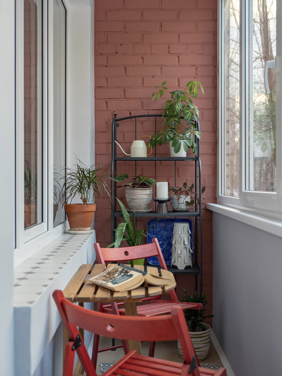 Дополните ту часть балкона, где вы отдыхаете, небольшой полкой для книг. Разместившись на удобном кресле с пледом, вы можете расслабиться и читать. Уютный уголок для чтения мгновенно сделает ваш балкончик любимым местом в доме.