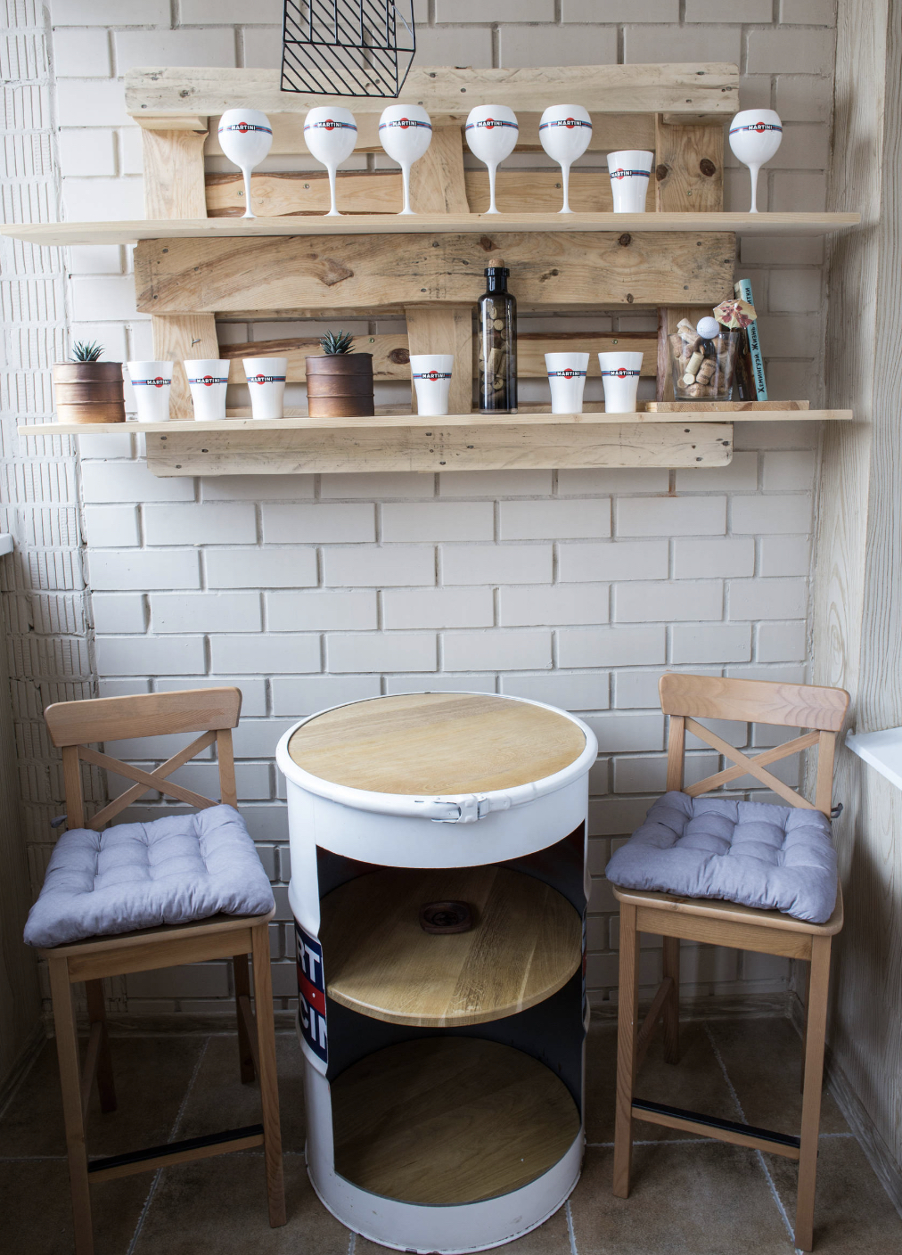 Если вы любитель проводить вечера с друзьями, общаясь за бокалом любимого напитка, то мини-бар идеальный способ оформления балкона. Он станет любимым местом для встреч и отдыха. Все, что вам нужно для обустройства – это компактная барная стойка. Она вмещает все необходимое для бара. Добавьте несколько уютных сидений и стол.