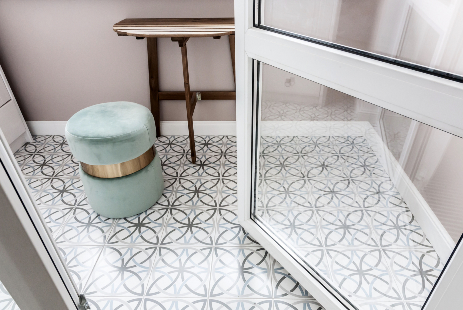 Чаще всего полы на балконе сделаны из бетона. Такое покрытие требует улучшения. Выберите удобный материал, соответствующий вашему стилю. Это может быть напольная плитка. Она бывает разных цветов, размеров и текстур. Деревянный пол придаст более естественную атмосферу. Чтобы утеплить пол, сделать его приятным для ног, расстелите коврик.