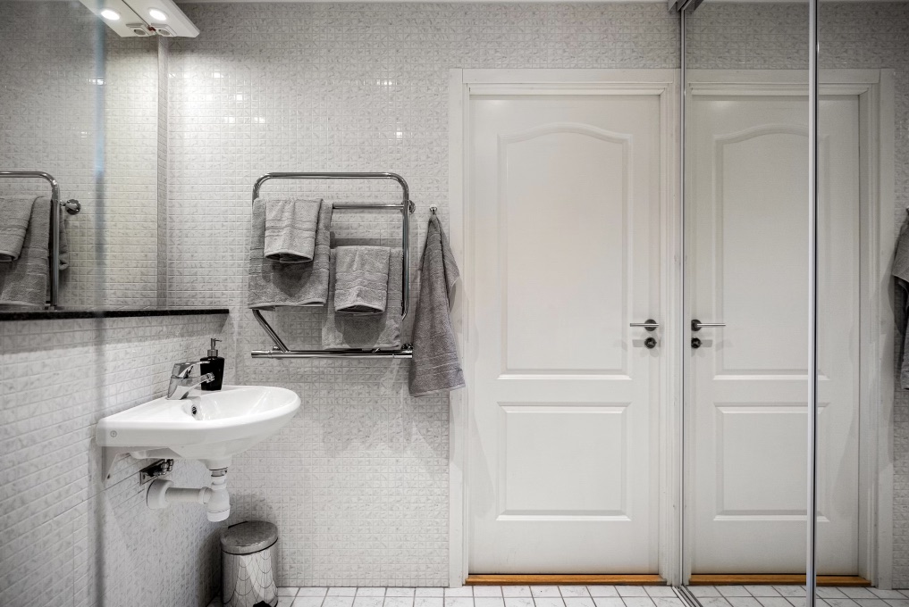 Двери в ванную не обязательно должны отличаться от остальных помещений. Чтобы установить одинаковые двери во всей квартире, сначала выберите двери в ванную, а после закажите такие же в остальные проемы.