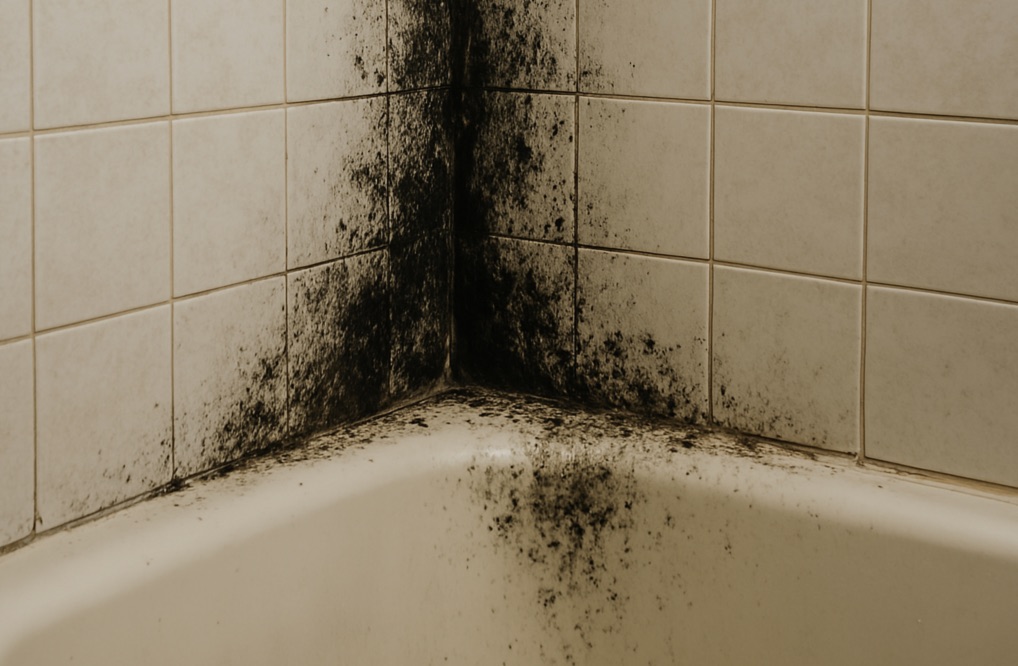 - Тщательно соскребите плесень (особенно местах углов, герметика швов).