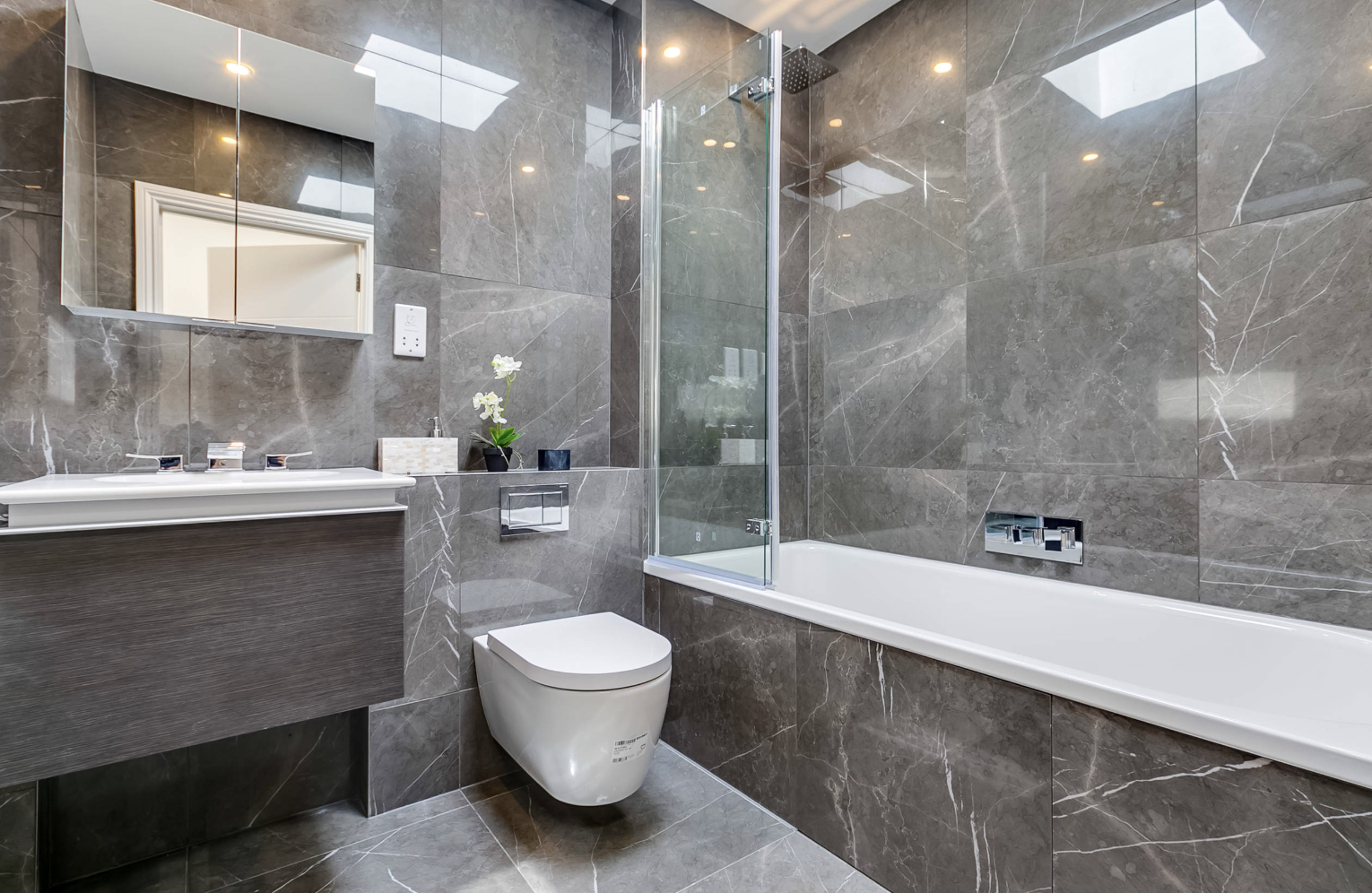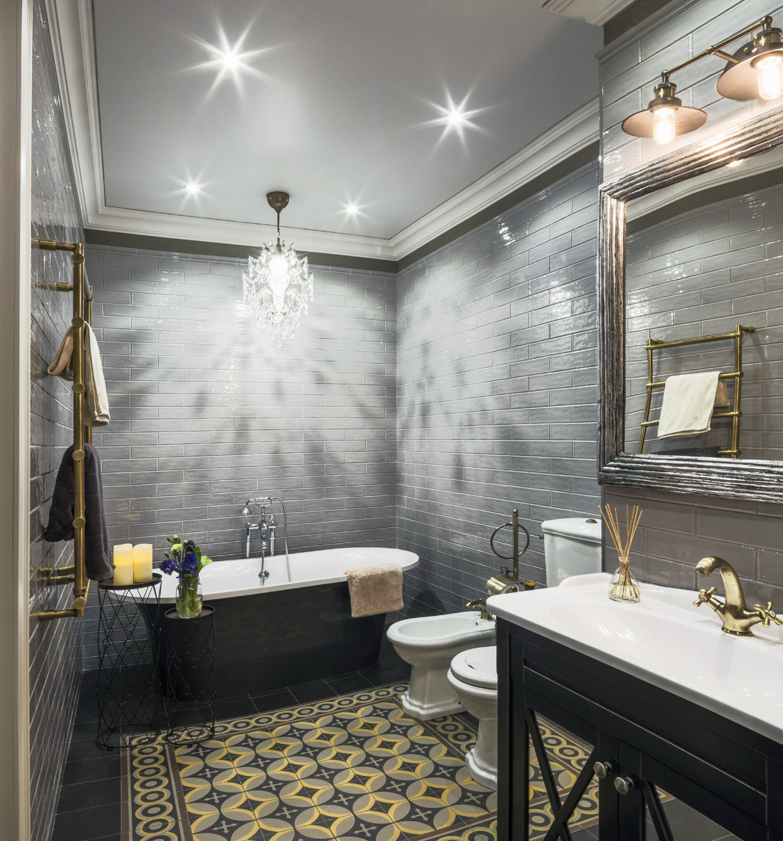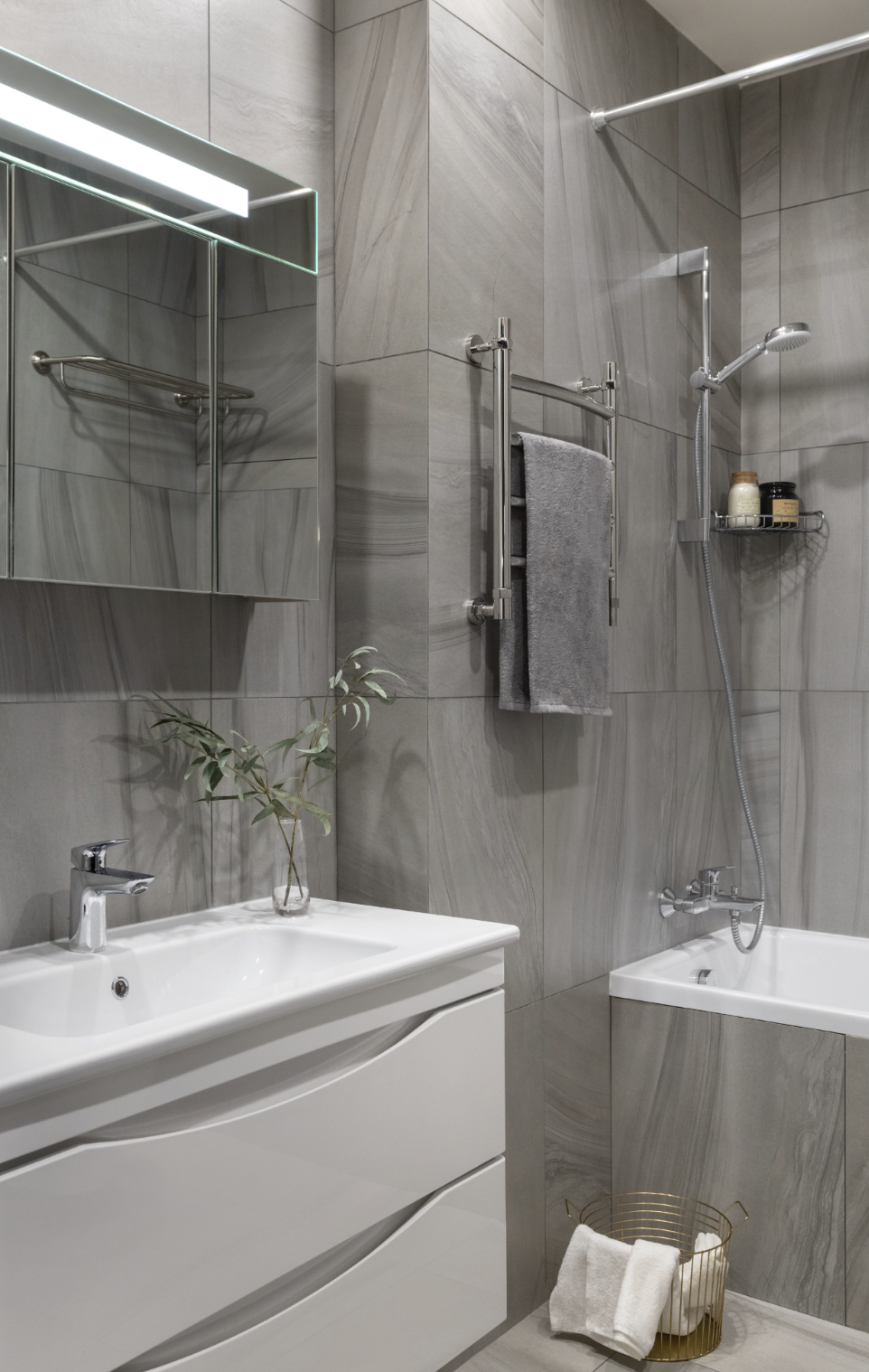 Серый цвет часто используется в стилях арт-деко, минимализм, а также в лофтовых и современных классических интерьерах. Если ваша ванная комната будет оформляться в одном из них, стоит выбрать именно серый в качестве основного цвета, особенно это касается стиля минимализм.
