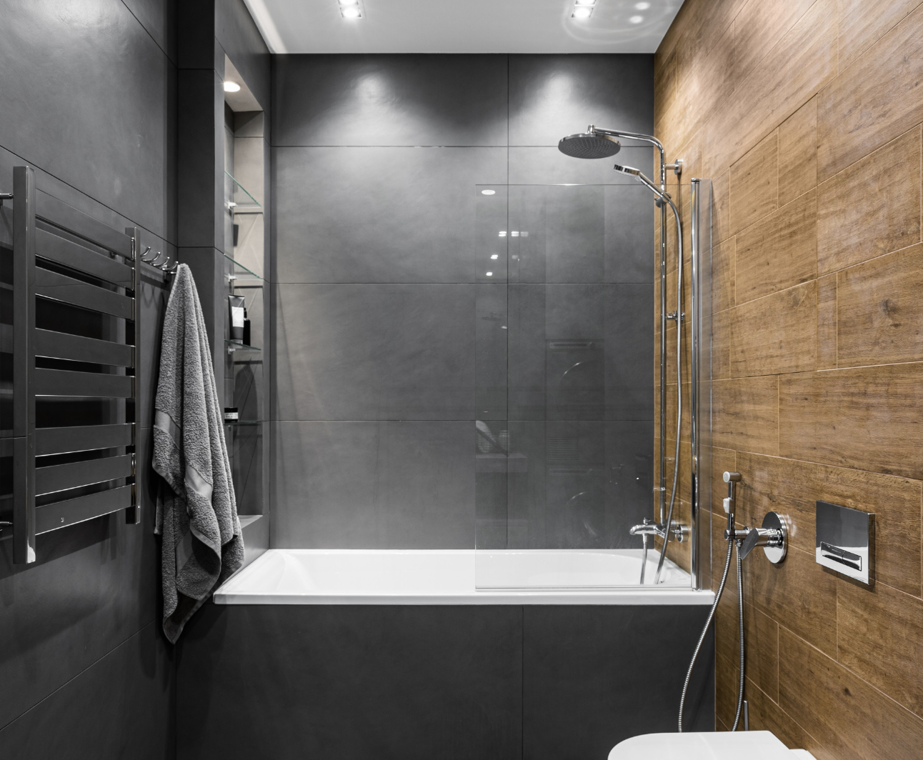 Смотрите подборку идей плитки для ванной с текстурой дерева.