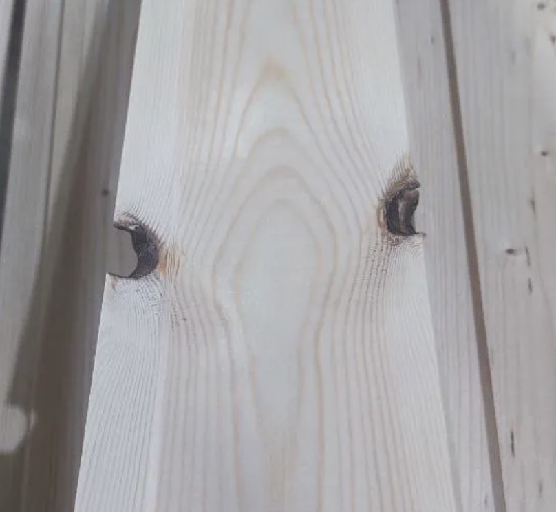 Профиль, не нуждающийся в дополнительной обработке, поступает в магазины с учетом приличного ценника. Максимальное допустимое отклонение от «идеала» — один большой светлый сучок, без каких-либо находящихся рядом поражений. Если на узкой доске обнаруживается вскрывшийся смоляной карман, мастера сначала извлекают амфорное вещество, а затем шпаклюют и зачищают участок наждачной бумагой.