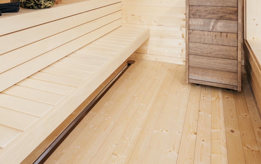При помощи проливного пола вы продлите жизненный цикл бани на очень долгое время. Его принцип работы заключается в том, что между досками есть зазор в 3-5 мм, благодаря которому вся вода и влага уходит между досками в грунт или дренажную систему, и не задерживается в бане. Таким образом обеспечивается и вентиляция помещения.